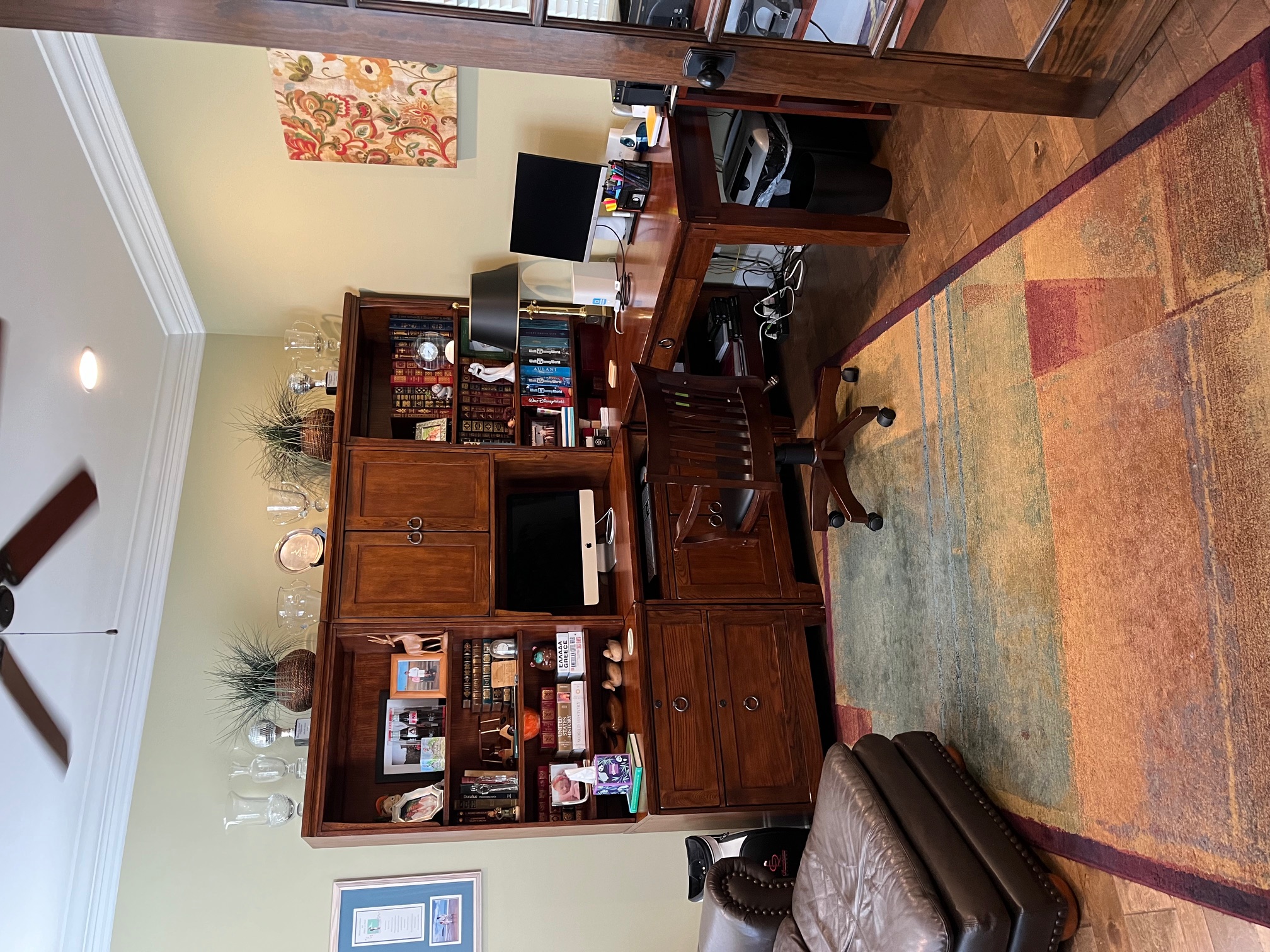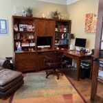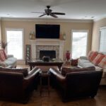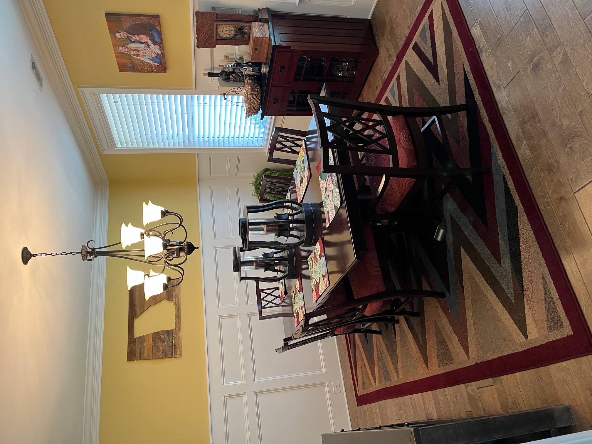 Inside, the home offers a spacious, open-concept layout with a large Great Room, gourmet kitchen, formal dining room, and private study. The main floor includes the owner’s suite, dining room, and study, while four additional bedrooms are located upstairs, providing plenty of space for family and guests. Dining room has seating for 6, kitchen table has seating for 4, and kitchen island has seating for 3