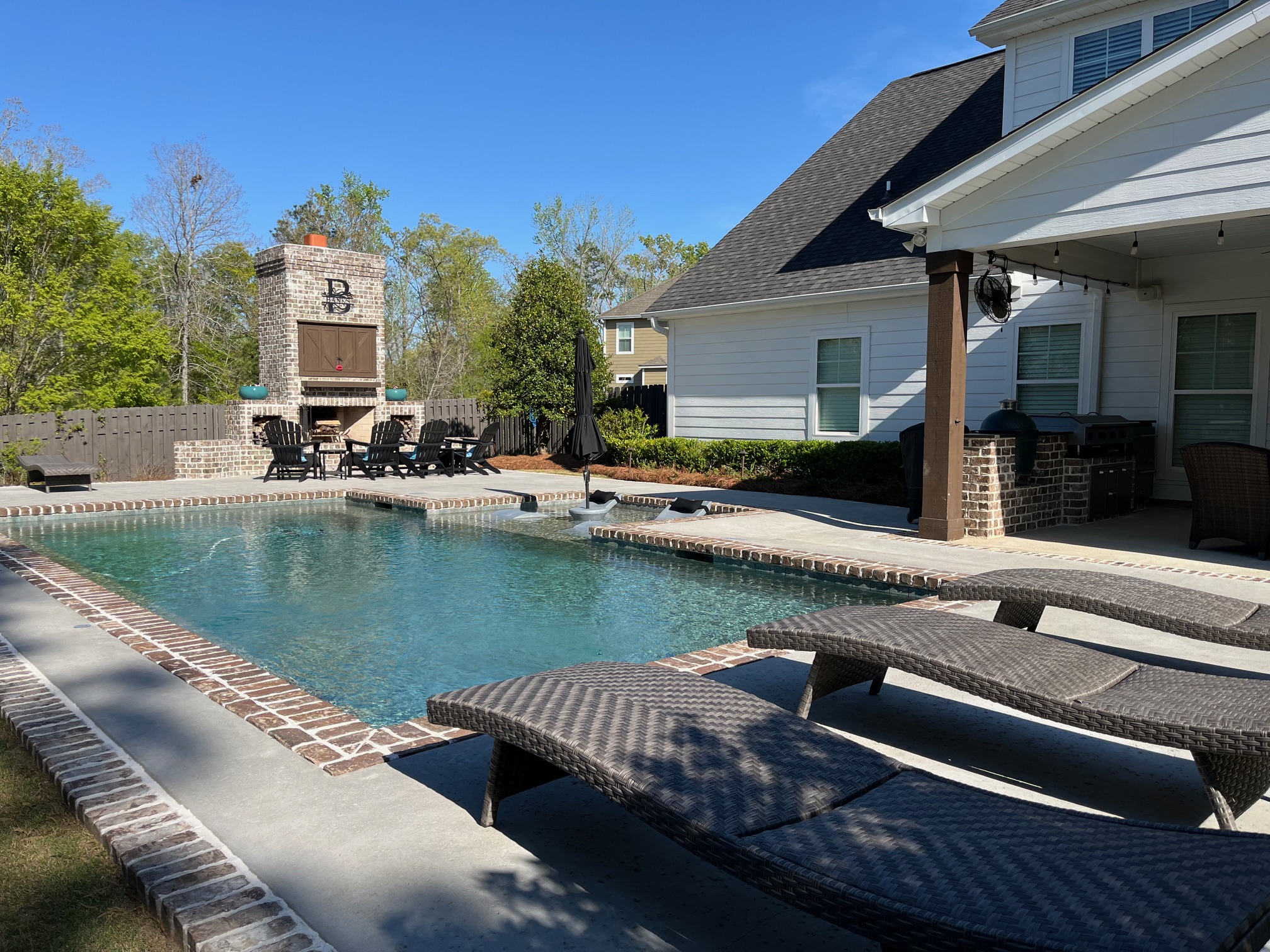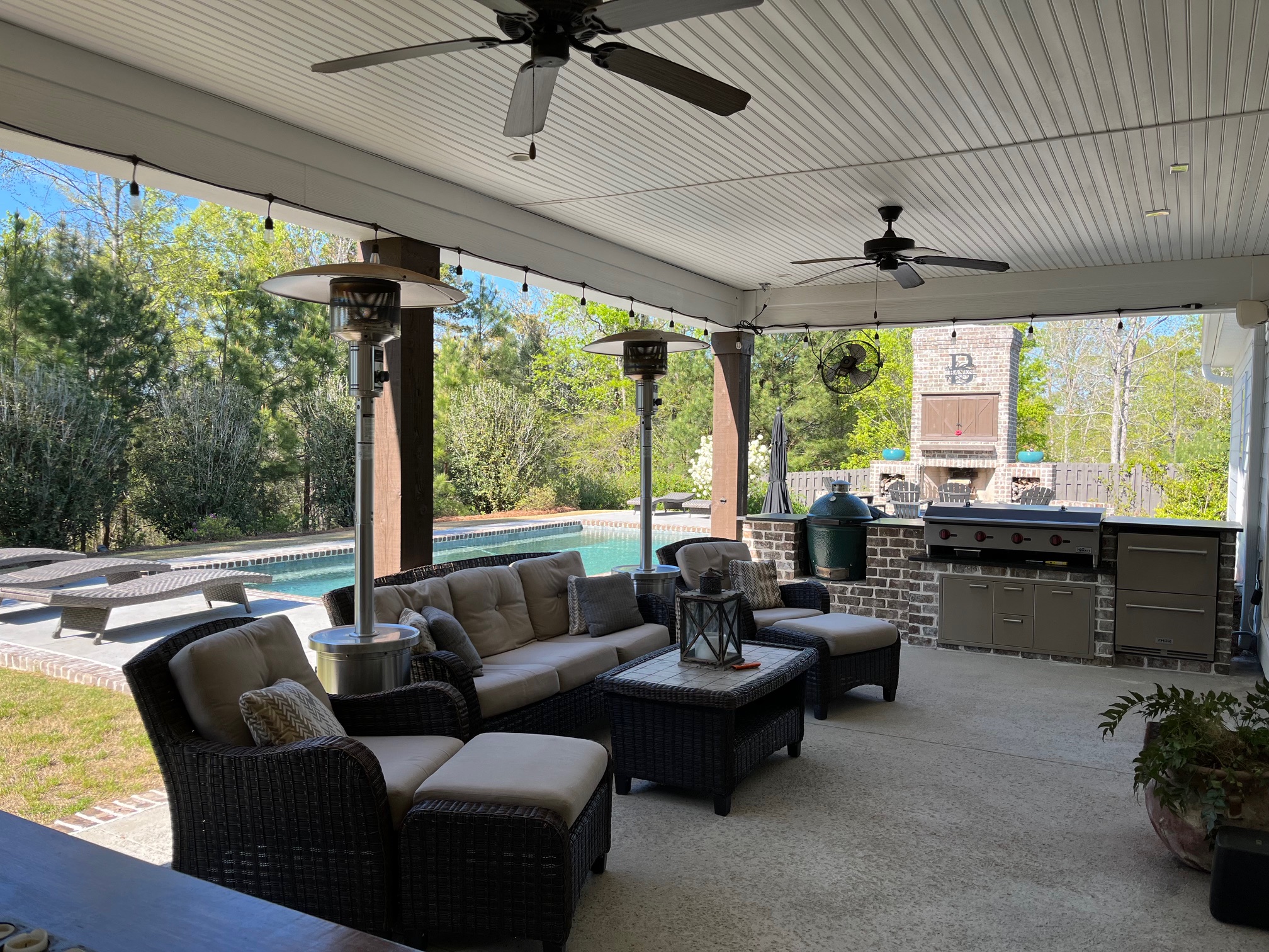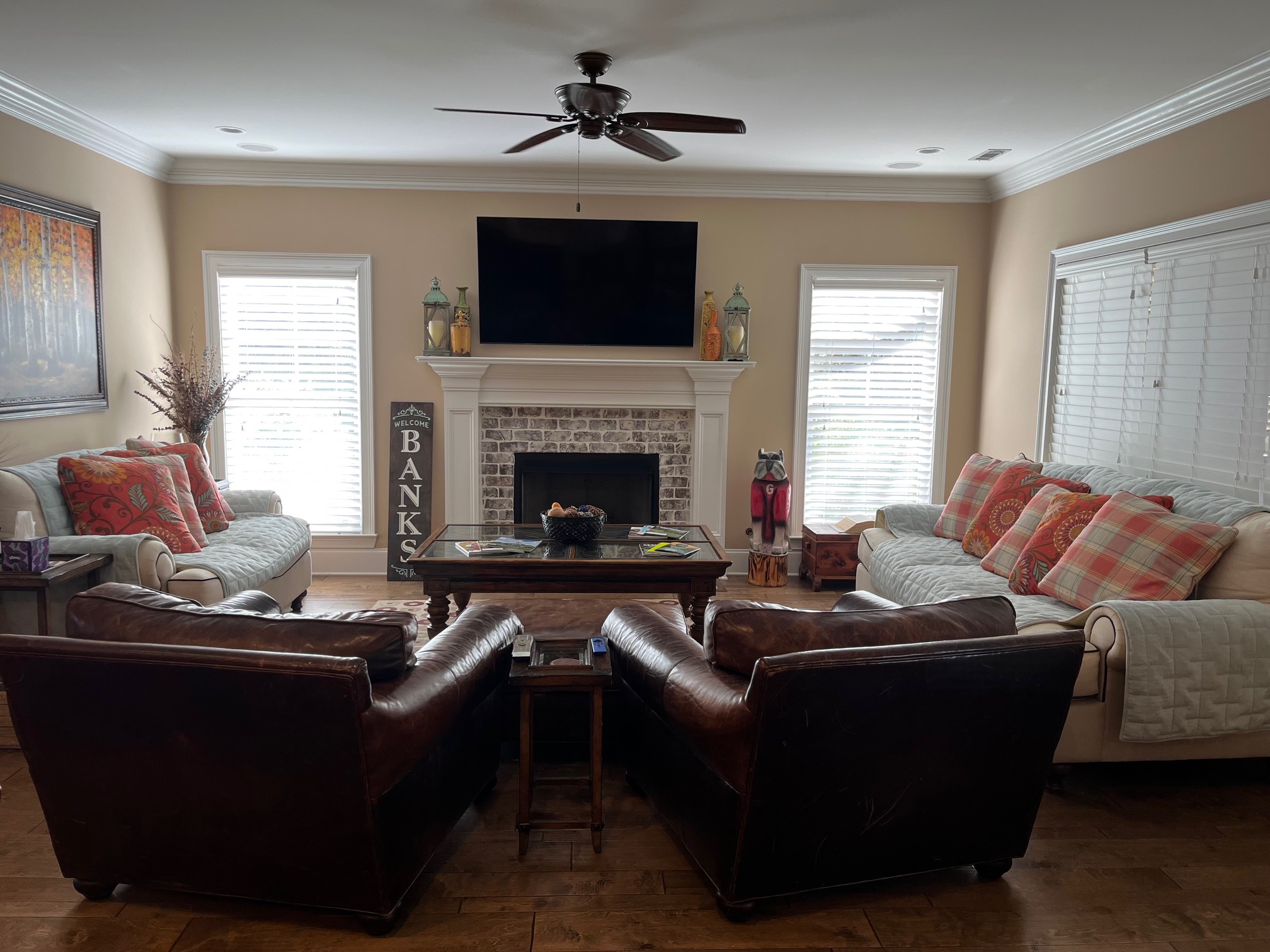 Just minutes from Champions Retreat Golf Course, this beautiful 5 bedroom, 3.5 bathroom home is tucked away on a private cul-de-sac in Hillcrest at Riverwood Plantation. Designed for both relaxation and entertaining, the outdoor space features a stunning pool, cozy fireplace with ample seating, and a covered back porch complete with a TV, dining area, Green Egg, and cooktop.