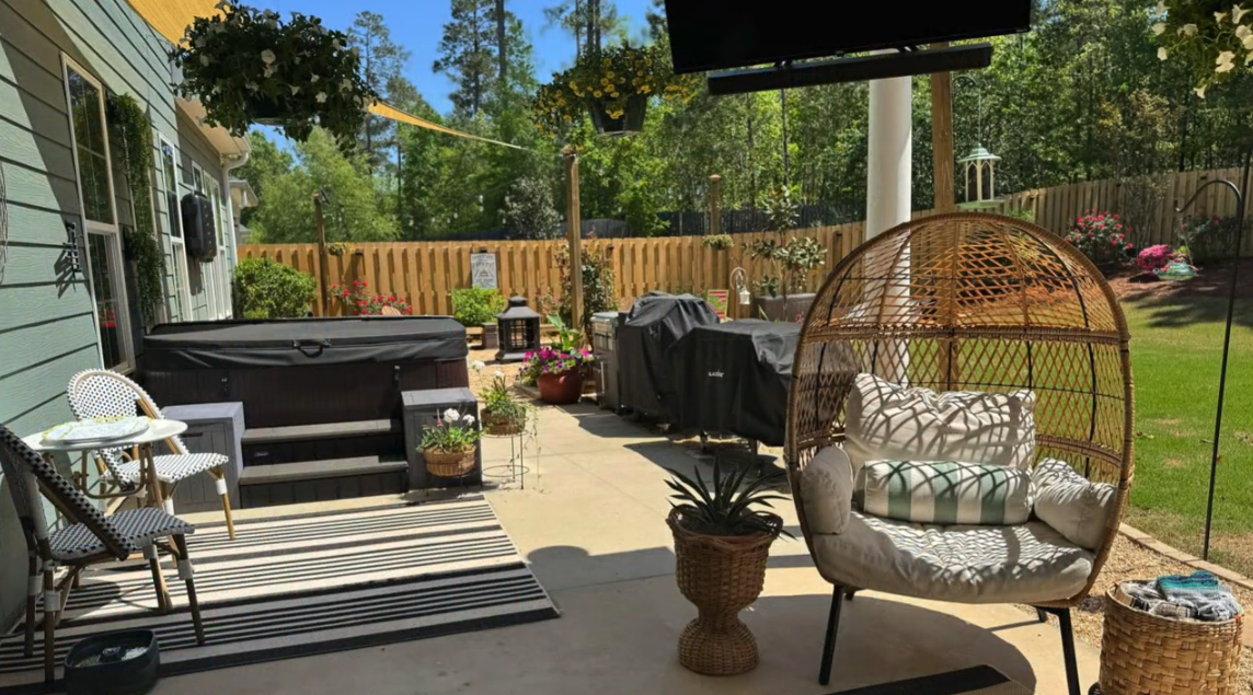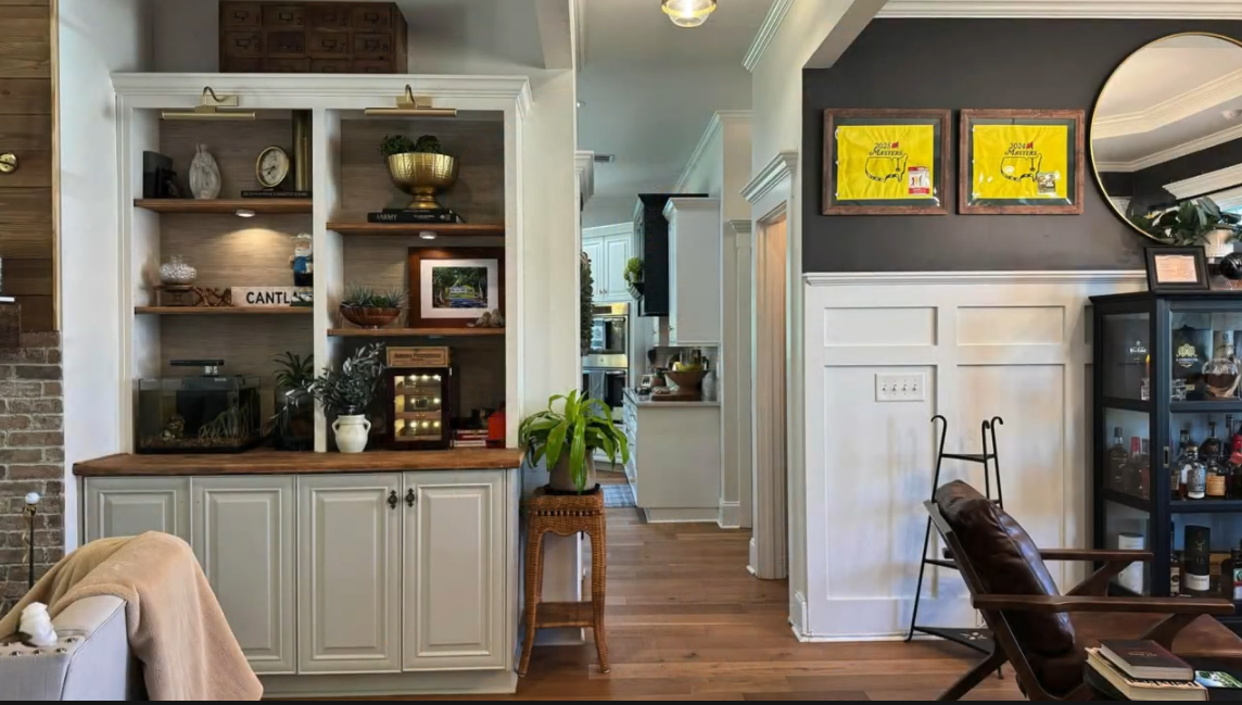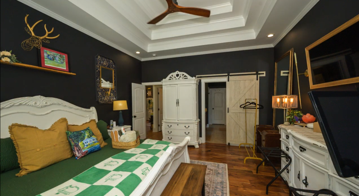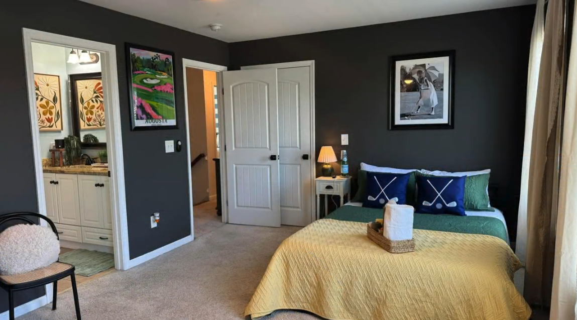 Miles to the CourseThis home offers a true “welcome home” experience, combining comfort, privacy, and thoughtfully designed spaces ideal for tournament guests. The property features four large bedrooms, three full bathrooms, and one half bath, providing ample space and convenience for groups, corporate guests, or families. In addition to inviting living areas throughout the home, there is a dedicated lounge-style sitting area—perfect for evening cocktails, conversation, or relaxing after a long day. This space enhances the home’s warm, Augusta-inspired character and is well-suited for entertaining. Outdoor living is a standout, with gas and wood-burning fire pits, a Blackstone griddle, private hot tub, and two outdoor TVs for tournament viewing or evening entertainment. The fenced and landscaped backyard offers privacy and a peaceful setting. Inside, guests will find a well-equipped kitchen and dining area, comfortable seating throughout, and a designated workspace suitable for corporate or personal use. The home is intentionally prepared to feel welcoming, functional, and relaxed. Located far enough from tournament congestion to feel quiet and comfortable, this property is ideal for patrons seeking an authentic and well-appointed home base.