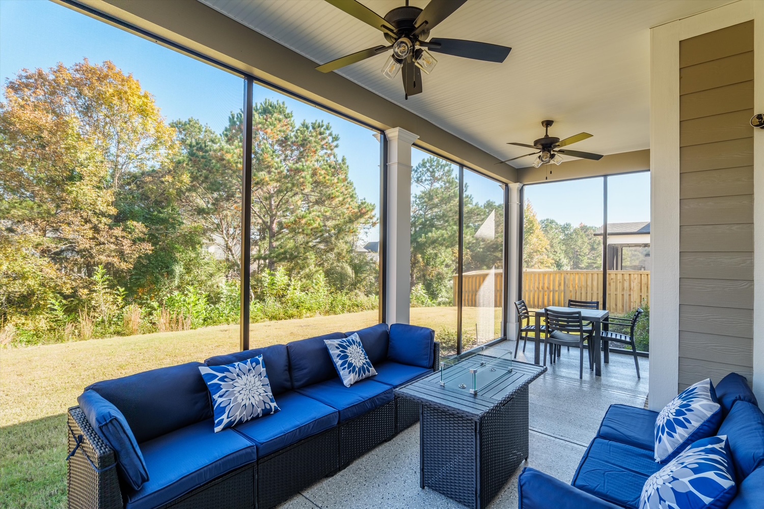 Miles to the CourseBeautiful newly built home in the community of Highland Lakes, only 14 miles from the course. First floor features an open concept floor plan with large kitchen, living room and formal dining room plus a workout space and gaming room for the little ones. The professional grade 8-burner stove and large kitchen island make for easy entertaining. There is seating for 4 at the island and seating for 8 at the dining room table. One half bath and 1 full bath are available on the first floor. The second floor features 4 bedrooms total plus a bonus room. Two bedrooms with queen beds share a jack-and-jill style bathroom and another bedroom with a full size bed features a private bathroom. The large master suite with king bed connects to a very large luxury bathroom with large soaking tub, double shower, and double sinks. Washer and dryer are available right outside the master suite. Bonus room is avail upstairs with an additional TV. House has 3 TVs total: 75” in the living room, 65” in the bonus room, and 55” in the kids playroom. Outside you’ll find a screened in patio with 2 couches, a fire table, and small dining table perfect for gathering after a day at the course. Traeger smoker and Blackstone flat top grill available for use.