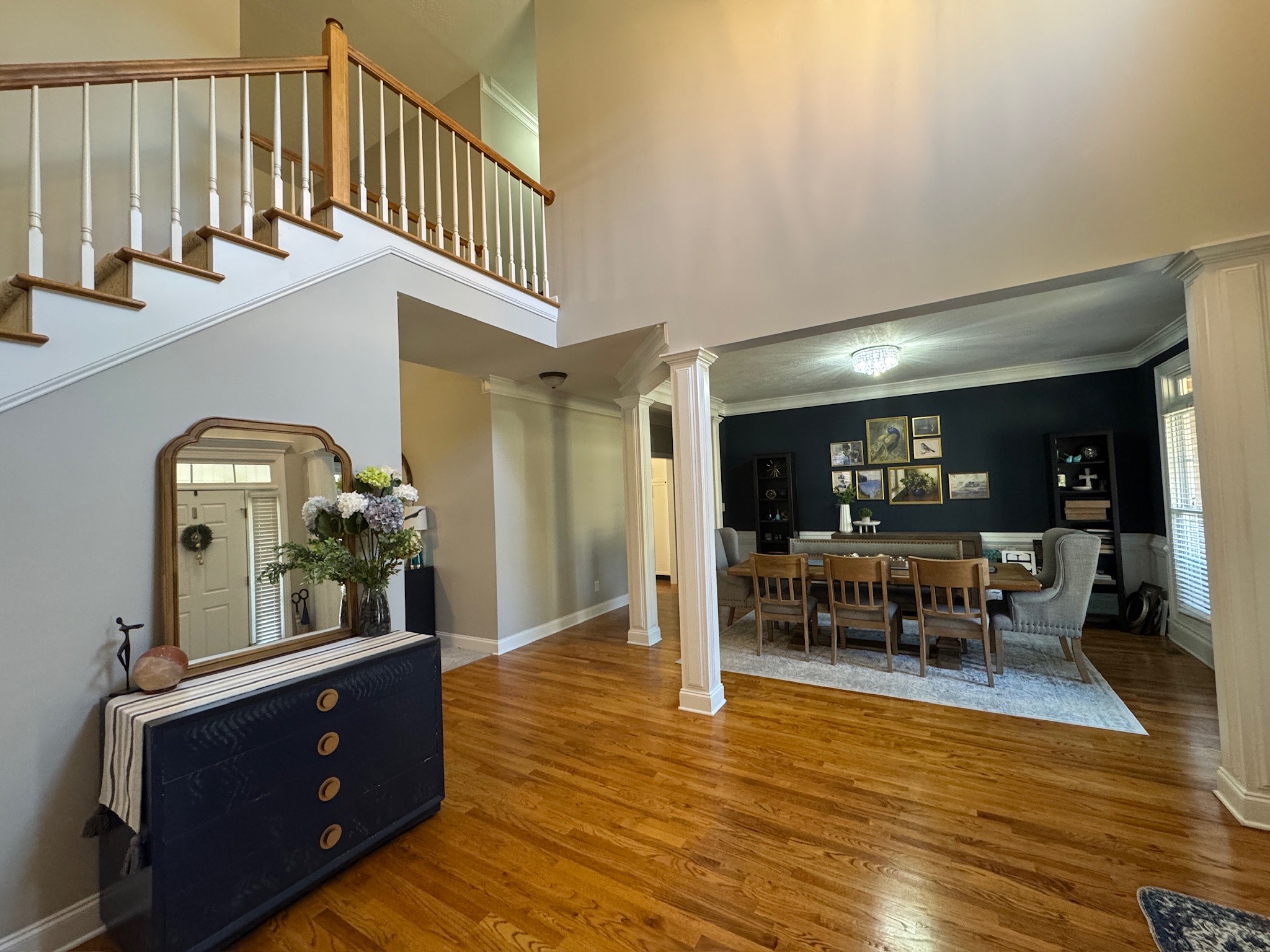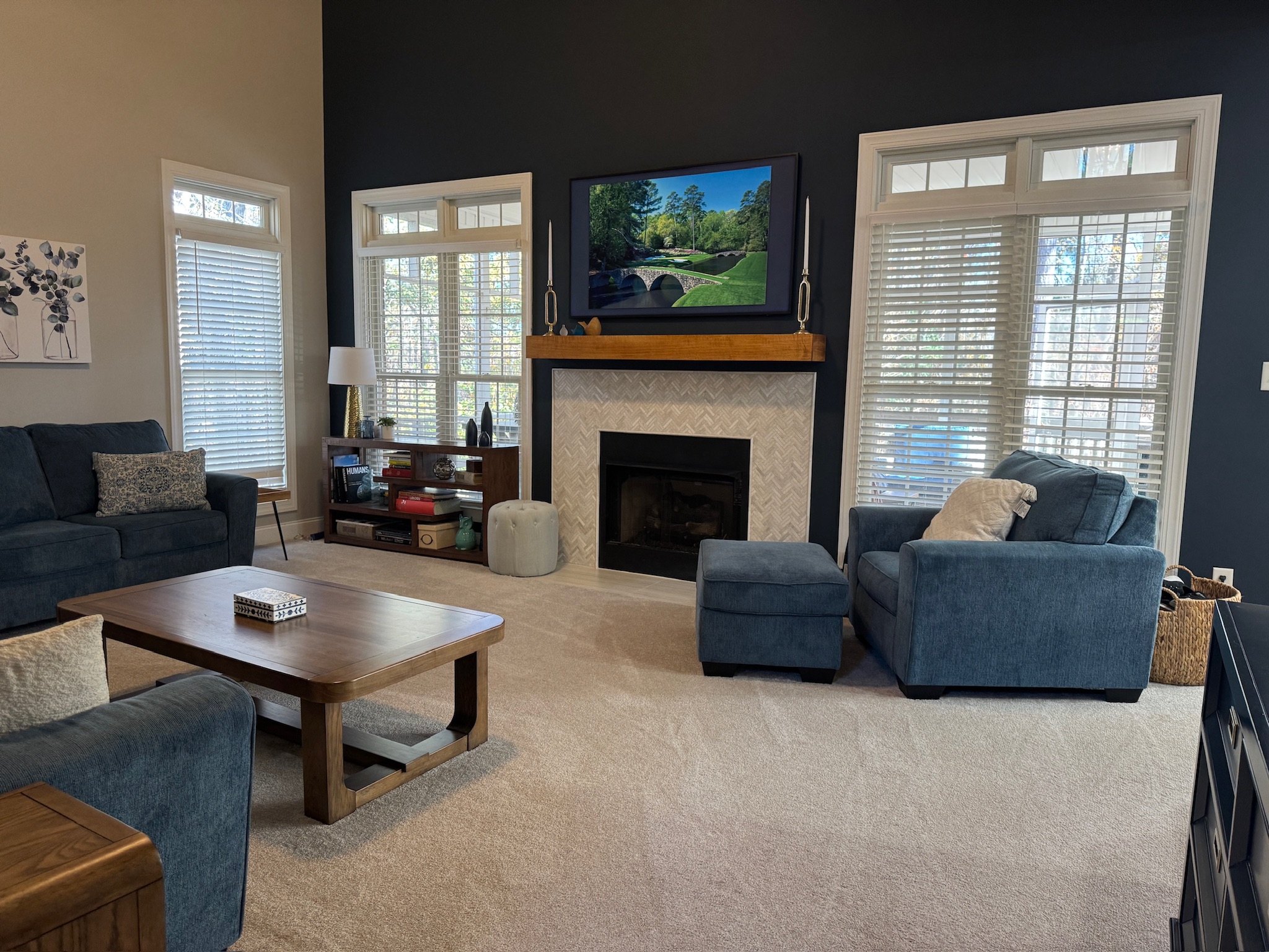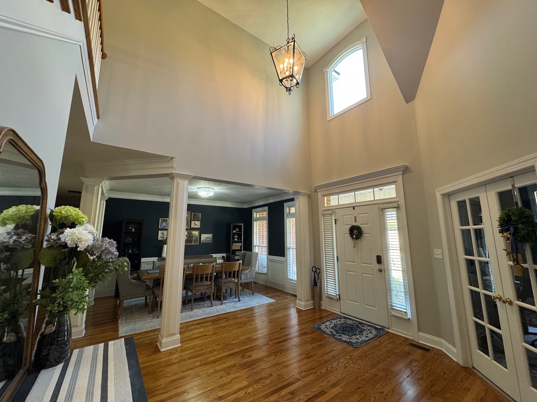 Miles to the CourseGorgeous home in Riverwood Plantation, home to Champions Retreat golf course, and only 11 miles from the tournament course. Just over ½ acre lot with 5 bedrooms, 3.5 bathrooms and vaulted 2 story ceilings. This home features a large foyer, open dining/living/kitchen setup, and plenty of space for your overnight guests. The eat-in kitchen features newly updated quartz countertops, stainless steel appliances and a coffee bar. The dining room has seating for 8, the island has seating for 2 and the breakfast table has seating for 6. The large owner suite features a king size bed, and an ensuite bath with a garden tub and large shower. There are 4 bedrooms and 2 full baths on the upper level of the home. The home sits on a nicely wooded private back yard with a screened in porch and deck off of the kitchen. There is access to the numerous wooded walking trails from the backyard. Great location for groceries, restaurants, and Champions Retreat golf course.