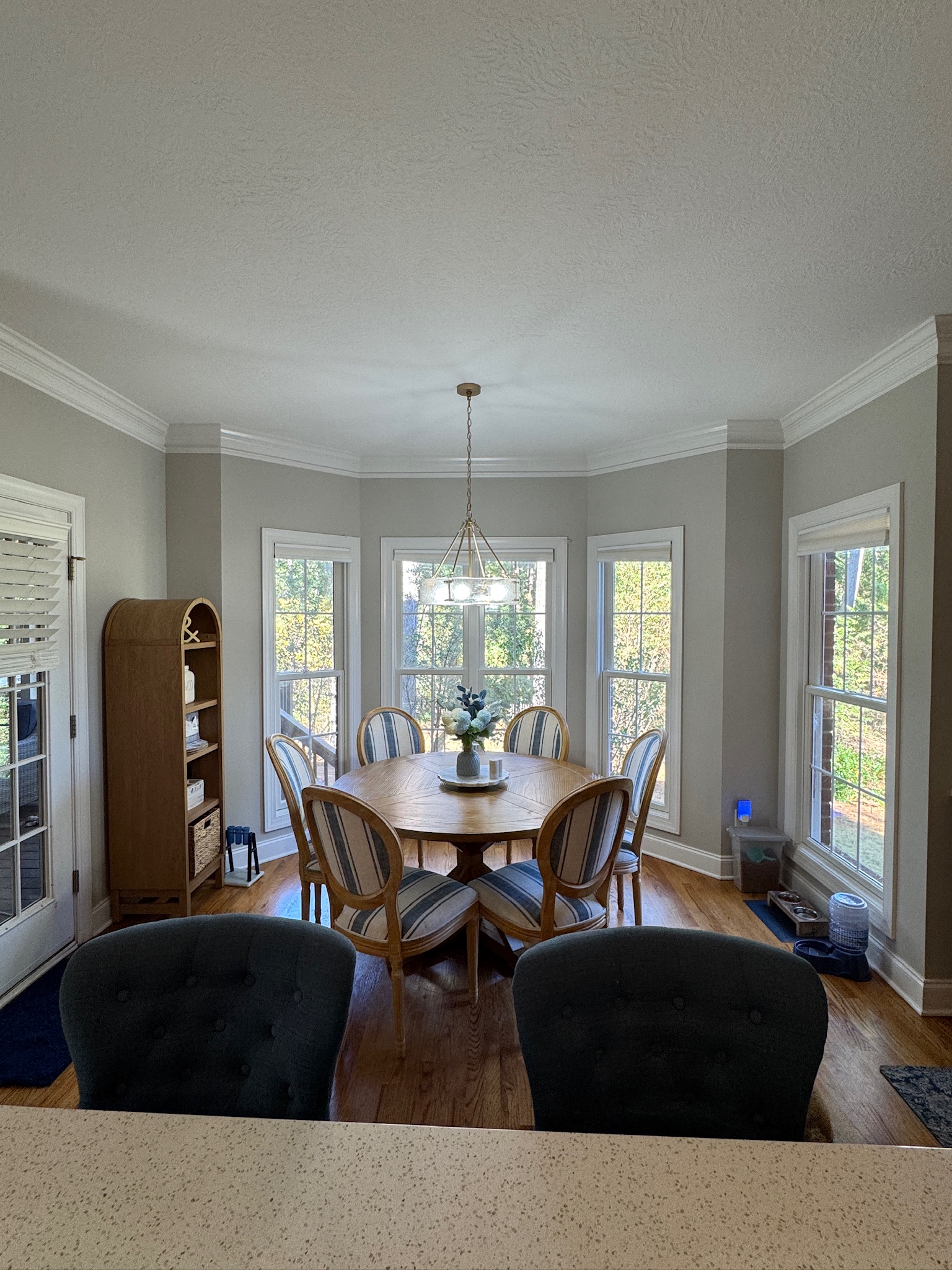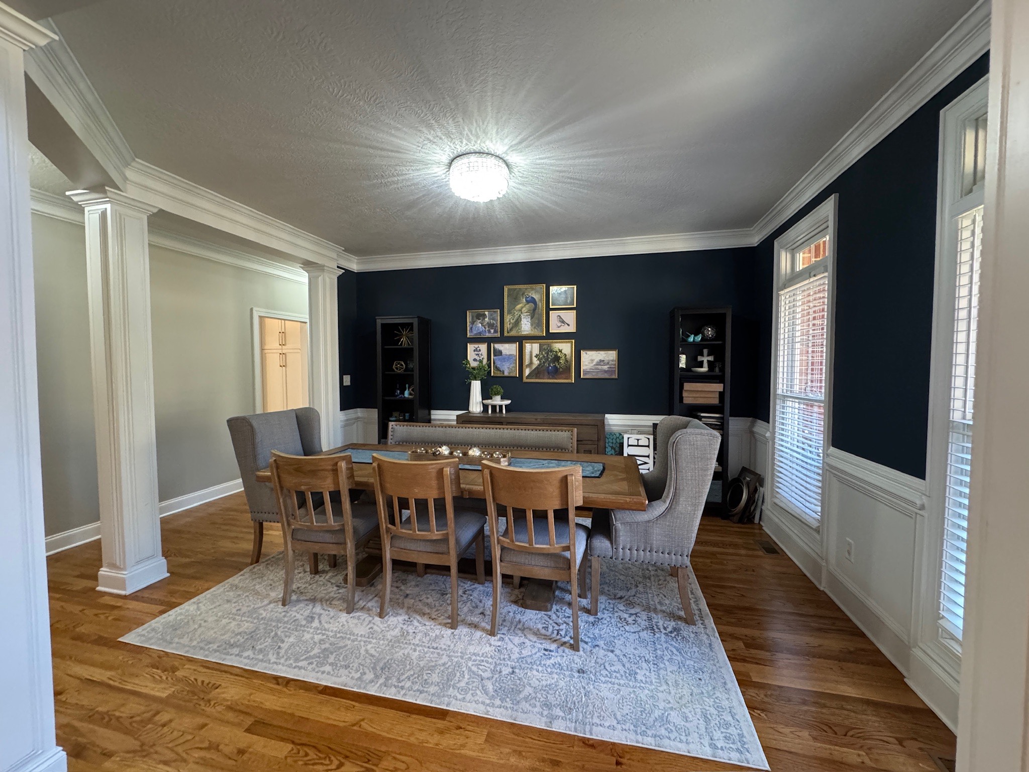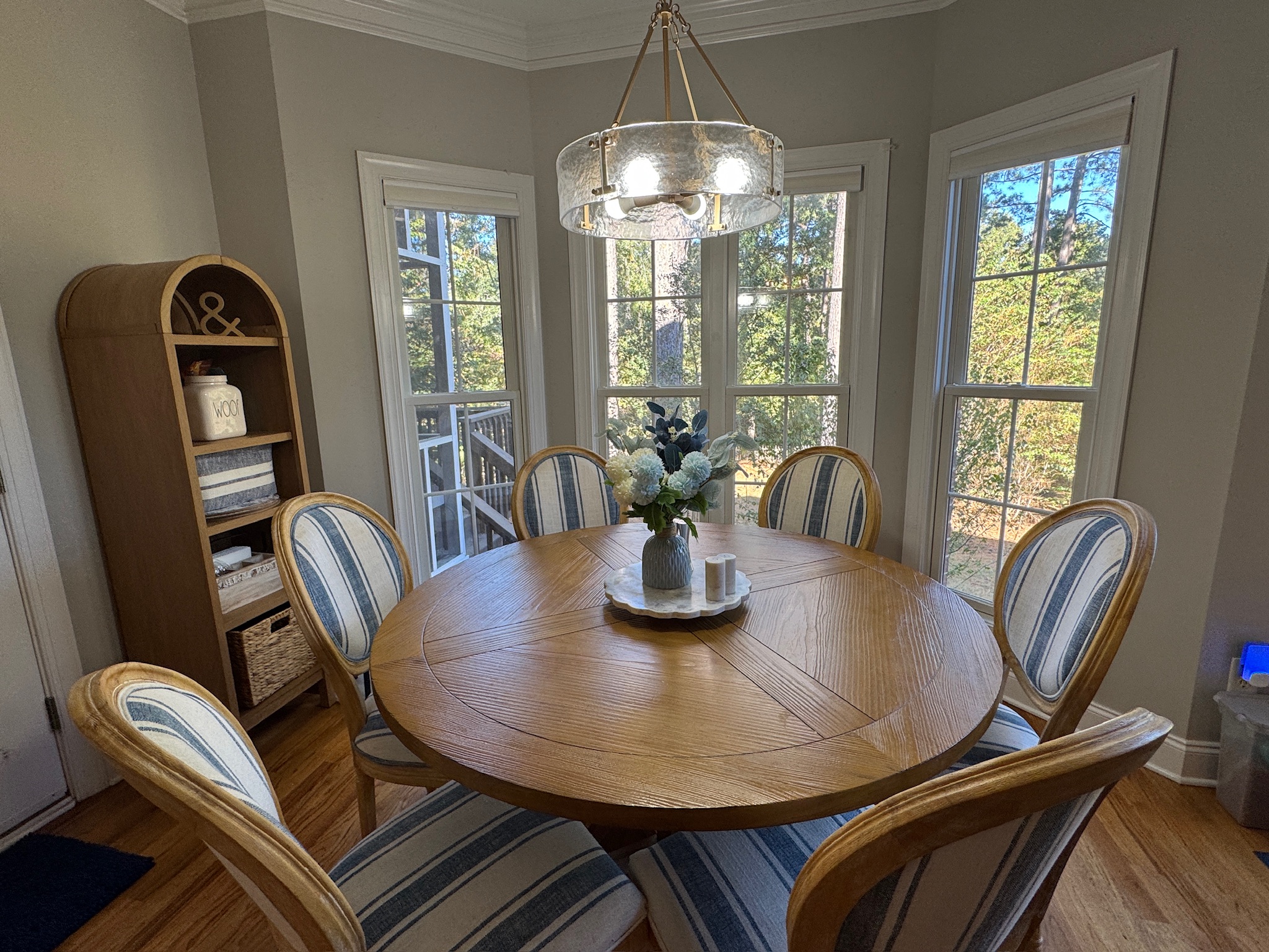 Miles to the CourseGorgeous home in Riverwood Plantation, home to Champions Retreat golf course, and only 11 miles from the tournament course. Just over ½ acre lot with 5 bedrooms, 3.5 bathrooms and vaulted 2 story ceilings. This home features a large foyer, open dining/living/kitchen setup, and plenty of space for your overnight guests. The eat-in kitchen features newly updated quartz countertops, stainless steel appliances and a coffee bar. The dining room has seating for 8, the island has seating for 2 and the breakfast table has seating for 6. The large owner suite features a king size bed, and an ensuite bath with a garden tub and large shower. There are 4 bedrooms and 2 full baths on the upper level of the home. The home sits on a nicely wooded private back yard with a screened in porch and deck off of the kitchen. There is access to the numerous wooded walking trails from the backyard. Great location for groceries, restaurants, and Champions Retreat golf course.