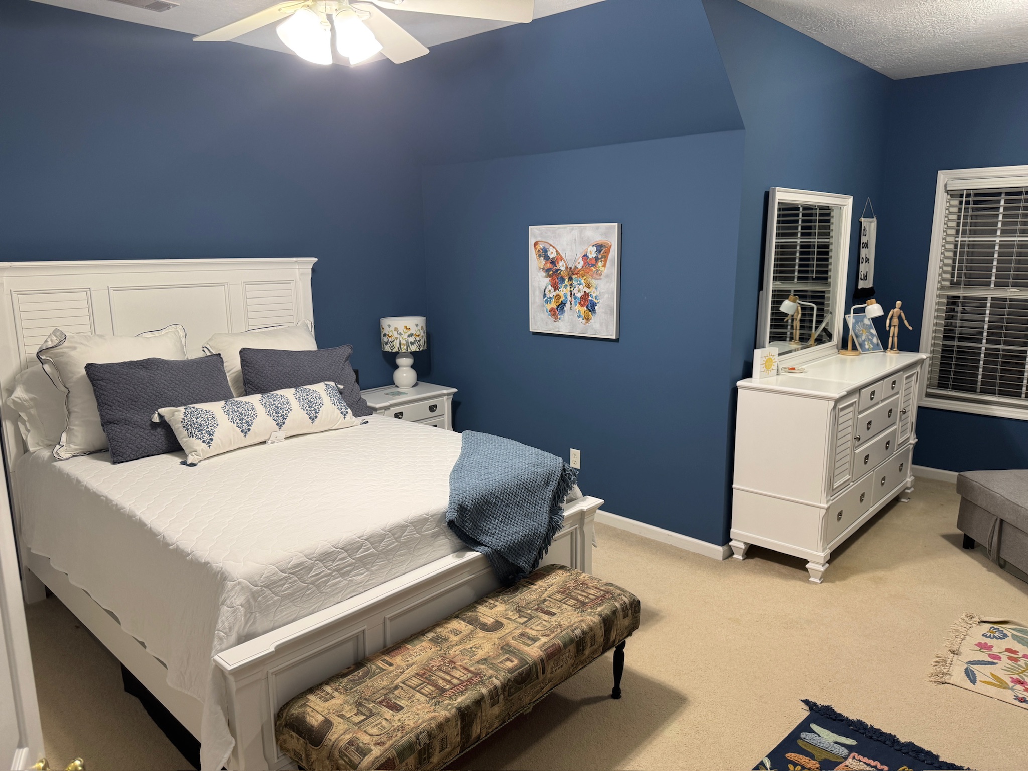 Bedroom 2: second floor queen bedroom, shared hall bathroom with bedroom 3