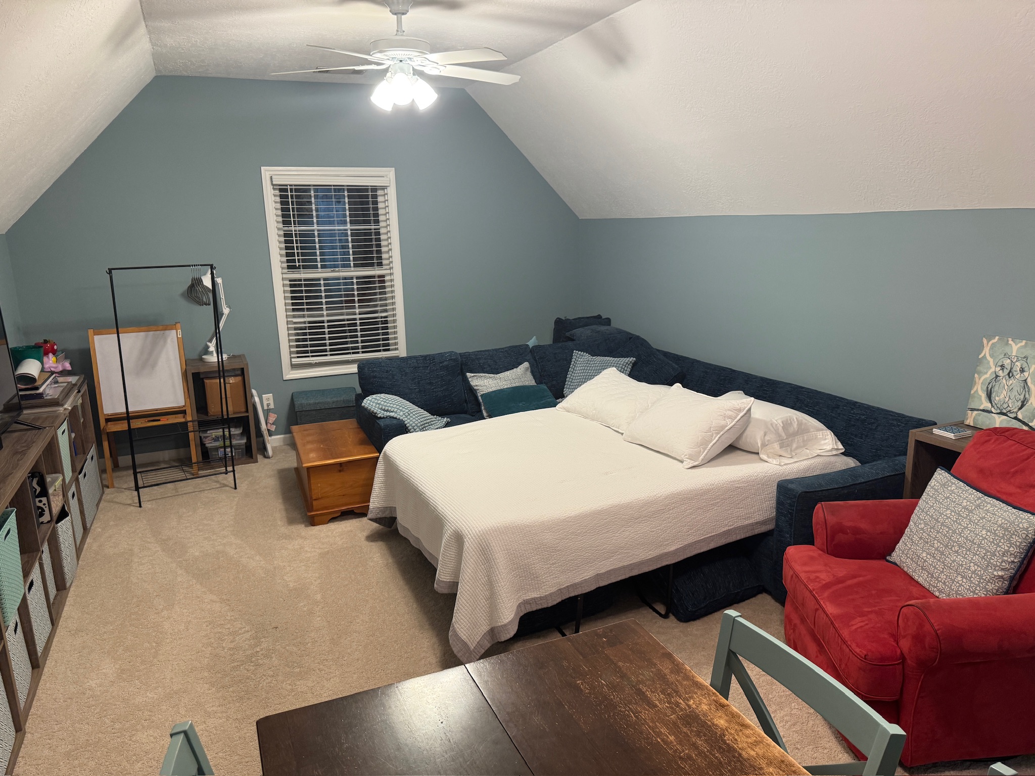 Bedroom 5: second floor loft room with queen pullout sofa with a thick mattress topper, jack and jill bathroom with Bedroom 4. (Room for additional 2nd twin bed in room if requested.)