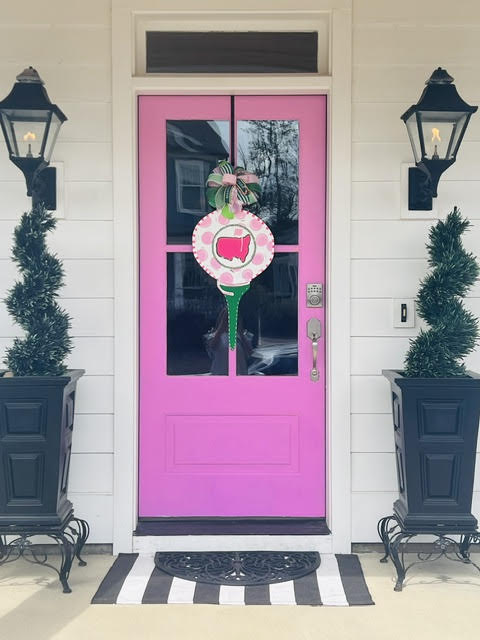 Nestled in the exquisite River Island neighborhood, located 5 miles from the course, this 2,300-square-foot modern farmhouse blends warmth, style, and comfort in a way that instantly feels like home. Soft, inviting tones flow throughout the interior, creating a relaxed atmosphere that perfectly complements the charm of its surroundings. Inside, the home boasts 10-foot ceilings, featuring 3 bedrooms and 3.5 baths, thoughtfully arranged for both privacy and functionality. The open dining area comfortably seats 8, making it an ideal setting for gatherings and lingering conversations. The kitchen island seating 3, anchors the main living space, adding both beauty and convenience for everyday living and effortless entertaining. The den serves as a cozy retreat with its large TV—mirrored by another in the serene primary suite—making both spaces perfect for unwinding. Step outside to the covered patio, where ample seating and a built-in heater invite year-round enjoyment. A third TV creates the ultimate outdoor lounge experience, whether for watching the tournament or hosting friends on a cool evening. But perhaps the most delightful detail of all is the happy pink front door—a cheerful statement that sets the tone for the entire home. It’s a touch of personality and joy that welcomes guests with a smile before they ever step inside.