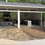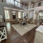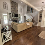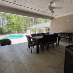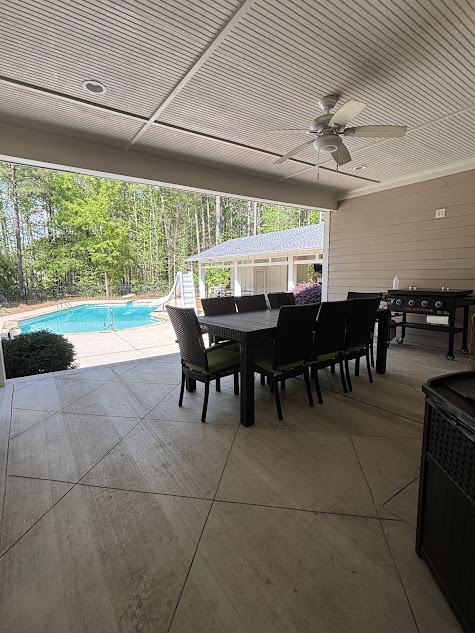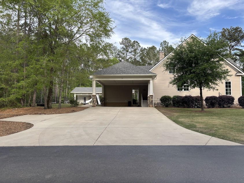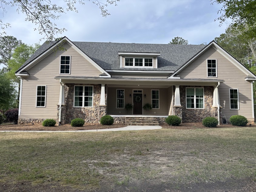 Miles to the CourseWelcome to this beautifully maintained Craftsman-style home featuring a charming combination of stone and siding accents, located 9 miles from the course. The spacious covered front porch offers the perfect spot to relax and enjoy the peaceful surroundings. Step inside to find an impressive open-concept living area with soaring ceilings, abundant natural light, and a stunning two-story overlook. The living room centers around a cozy seating area with rich hardwood floors that flow seamlessly throughout the main level. Large windows frame the space, creating a bright and welcoming atmosphere. The elegant dining area is perfect for entertaining, featuring a rustic farmhouse-style table and a stylish light fixture. It opens effortlessly into a gourmet kitchen complete with classic white cabinetry, granite countertops, stainless steel appliances, and a large breakfast bar for casual dining. This spacious, open-concept kitchen is a perfect blend of classic and modern design, ideal for both everyday living and entertaining. The room features crisp white shaker-style cabinetry and light-colored countertops that complement the stainless steel appliances, including a professional-style gas range and a side-by-side refrigerator. A large center island with a opposite a built-in sink provides ample workspace and includes seating for two, creating a natural gathering spot. The kitchen seamlessly flows into the breakfast room area, which is anchored by a rustic farmhouse-style dining table and bench, perfect for family meals and hosting guests. The space is well-lit with recessed lighting and a striking multi-light chandelier over the dining table, while a large arched window above the kitchen sink provides abundant natural light and a view of the outdoors. There is seating for 8 at the dining room table, seating for 8 at the breakfast table, and seating for 2 at the island. Upstairs, a graceful balcony overlooks the main living area, adding architectural charm and a sense of openness. This home combines timeless design with modern comfort — ideal for both family living and entertaining. The main level features a luxurious primary suite complete with an elegant en suite bathroom, providing a private retreat for relaxation. Just off the main hall, you’ll find a comfortable guest bedroom and full bath, ideal for visitors or multigenerational living. Upstairs, Bedroom 3 offers easy access to a nearby hall bathroom, while Bedrooms 4 and 5 share a bath, providing both privacy and convenience. A spacious bonus room serves as a versatile entertainment area, featuring a TV and sleeper sofa — perfect for movie nights or additional guest accommodations. Step outside to the Pool House, the ultimate entertaining space! Complete with a cozy fireplace, a large island, kitchen sink, and refrigerator, this area is designed for effortless indoor-outdoor living — ideal for poolside gatherings and evening relaxation. This home perfectly blends warmth, elegance, and functionality — an ideal retreat with all the comforts of modern living.