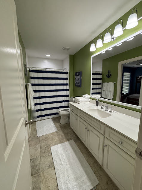 Bedroom#2: first floor queen bedroom with guest bathroom in hallway