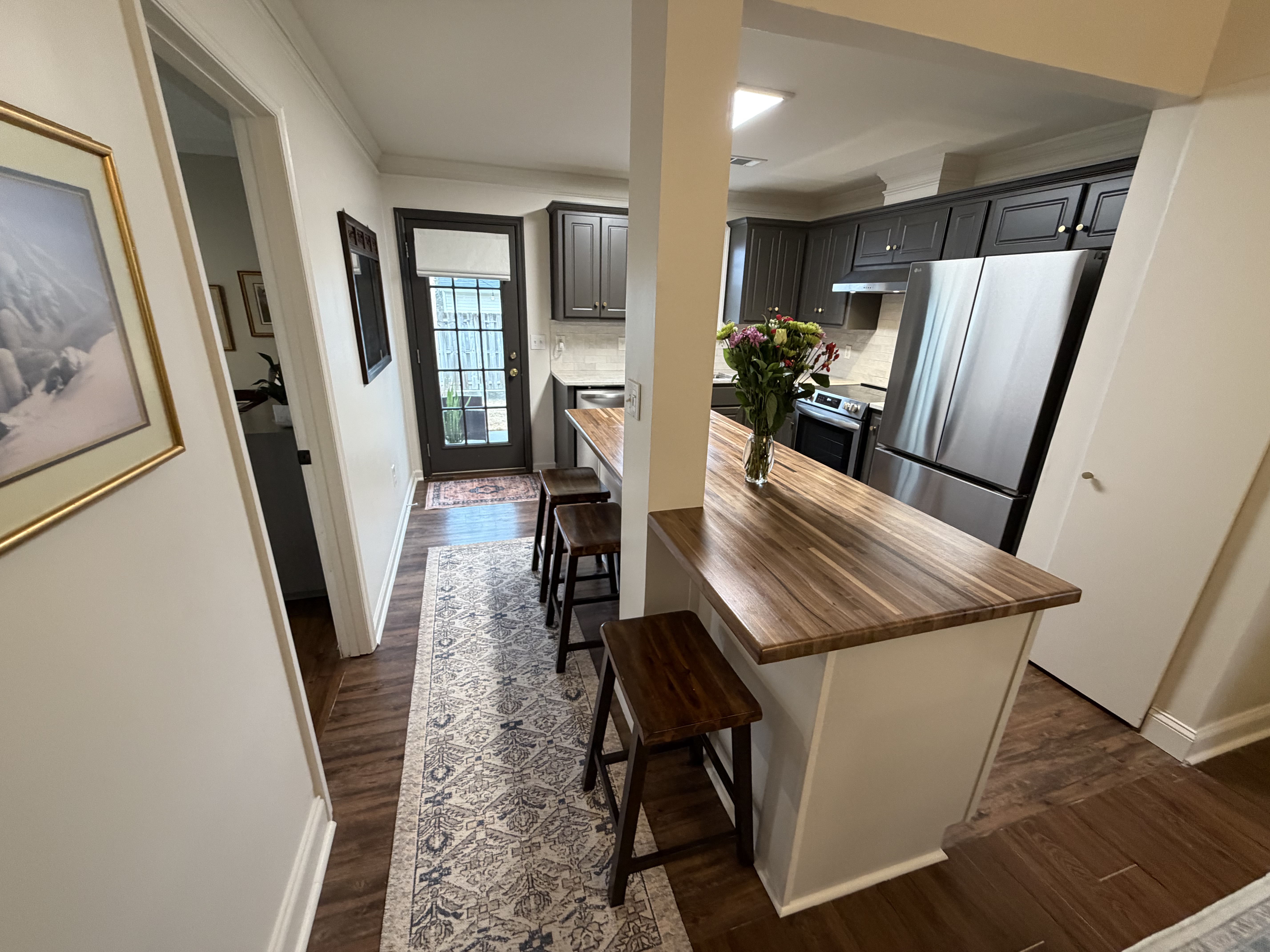 The home features a fully renovated kitchen with Taj Mahal quartzite countertops, stainless steel appliances, and a stunning butcher block island—perfect for entertaining before or after a day at the course. Thoughtful upgrades continue throughout the rest of the house, offering a refined yet welcoming atmosphere.