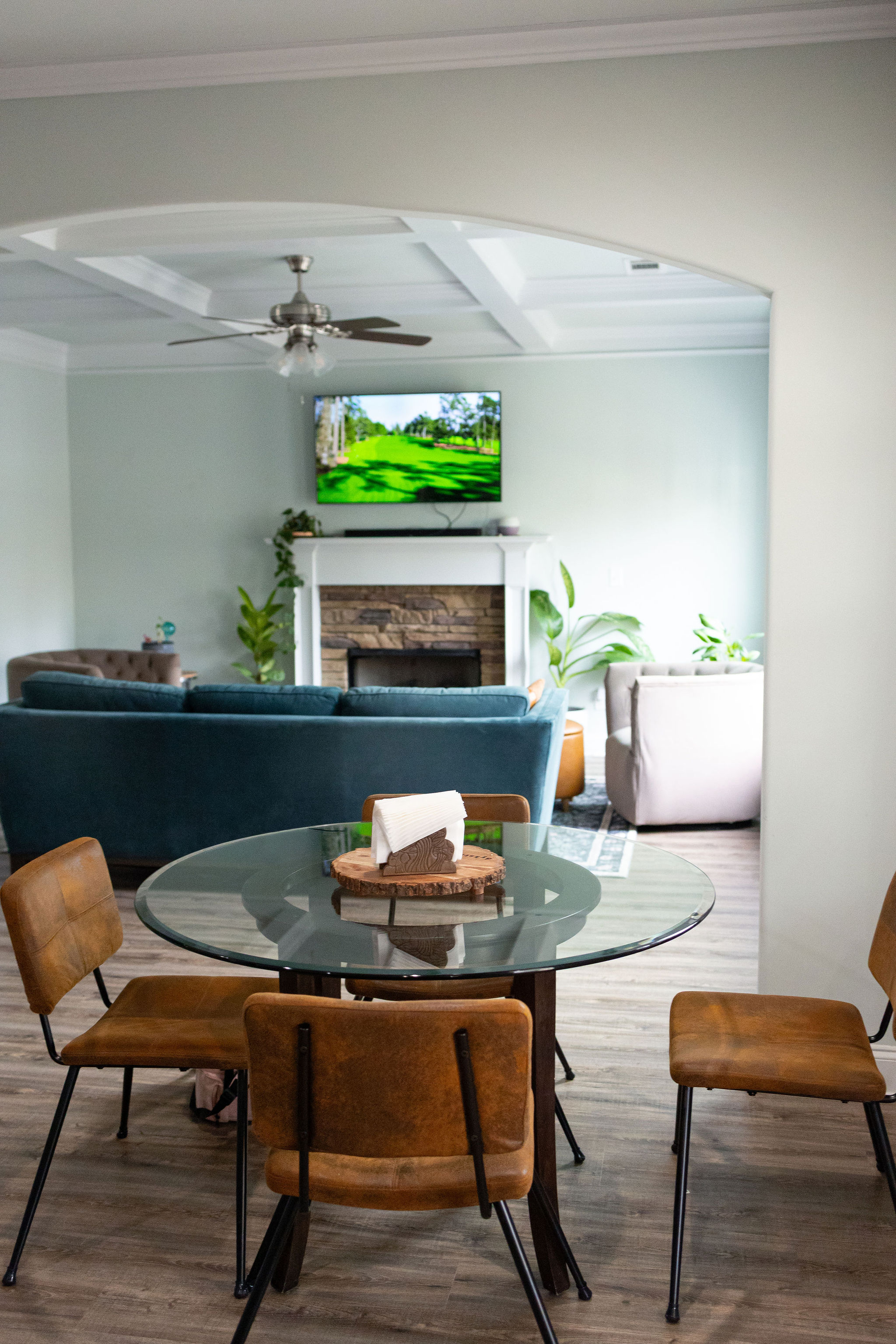 Miles to the CourseExperience comfort and convenience in this beautifully maintained 4-bedroom, 2.5-bath home located in the desirable Riverwood Plantation community of Evans, Georgia. This home offers the perfect balance of space, privacy, and prime location, only 12 miles from the course. Home is conveniently located near local shopping center with restaurants and also nearby the Champions Retreat golf course. This home features an open concept with living and dining areas. The fully equipped kitchen is designed for both convenience and entertaining during tournament. It features granite countertops, a gas range, stainless steel appliances, and a large walk-in pantry offering ample storage for groceries and catering needs. Guests will enjoy premium small appliances, including a large Ninja air fryer and Ninja coffee maker, perfect for early tournament mornings. Filtered drinking water is available, adding an extra level of comfort for extended stays. Kitchen opens into a large open concept living room and breakfast nook. The dining room has seating for 6 and the breakfast table has seating for 4. The outdoor living area with TV and fireplace will be an excellent place to unwind and watch tournament recaps after a day at the course.
