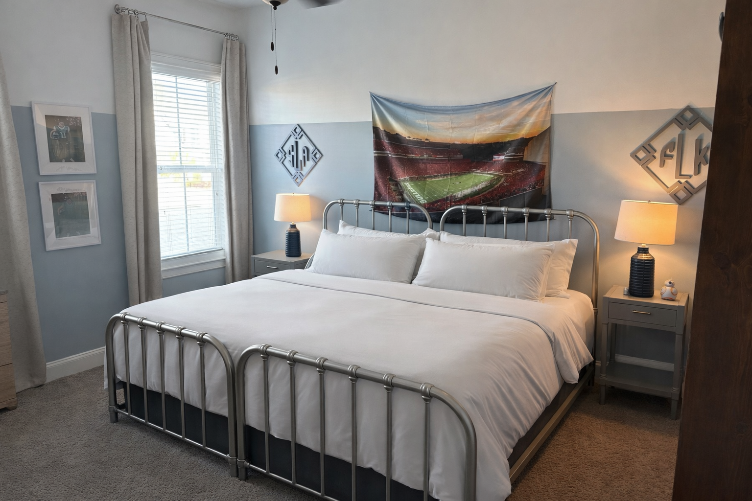 The main level includes a spacious primary suite, along with two additional bedrooms, each with its own private ensuite bathroom—ideal for privacy and convenience. Upstairs, you’ll find two more generously sized bedrooms and a large open area with plenty of space to unwind. A Peloton bike is available for guests who want to keep up with their fitness routine during their stay.
