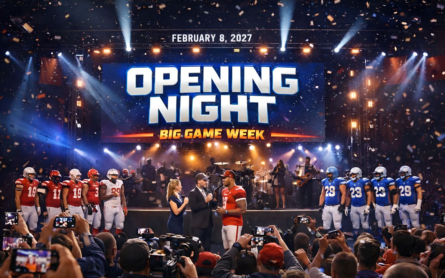 Kick off Big Game Week at Opening Night on February 8, 2027. The location is still to be determined. This electrifying event offers fans a chance to witness player interviews, team introductions, and live entertainment, setting the stage for the Big game.